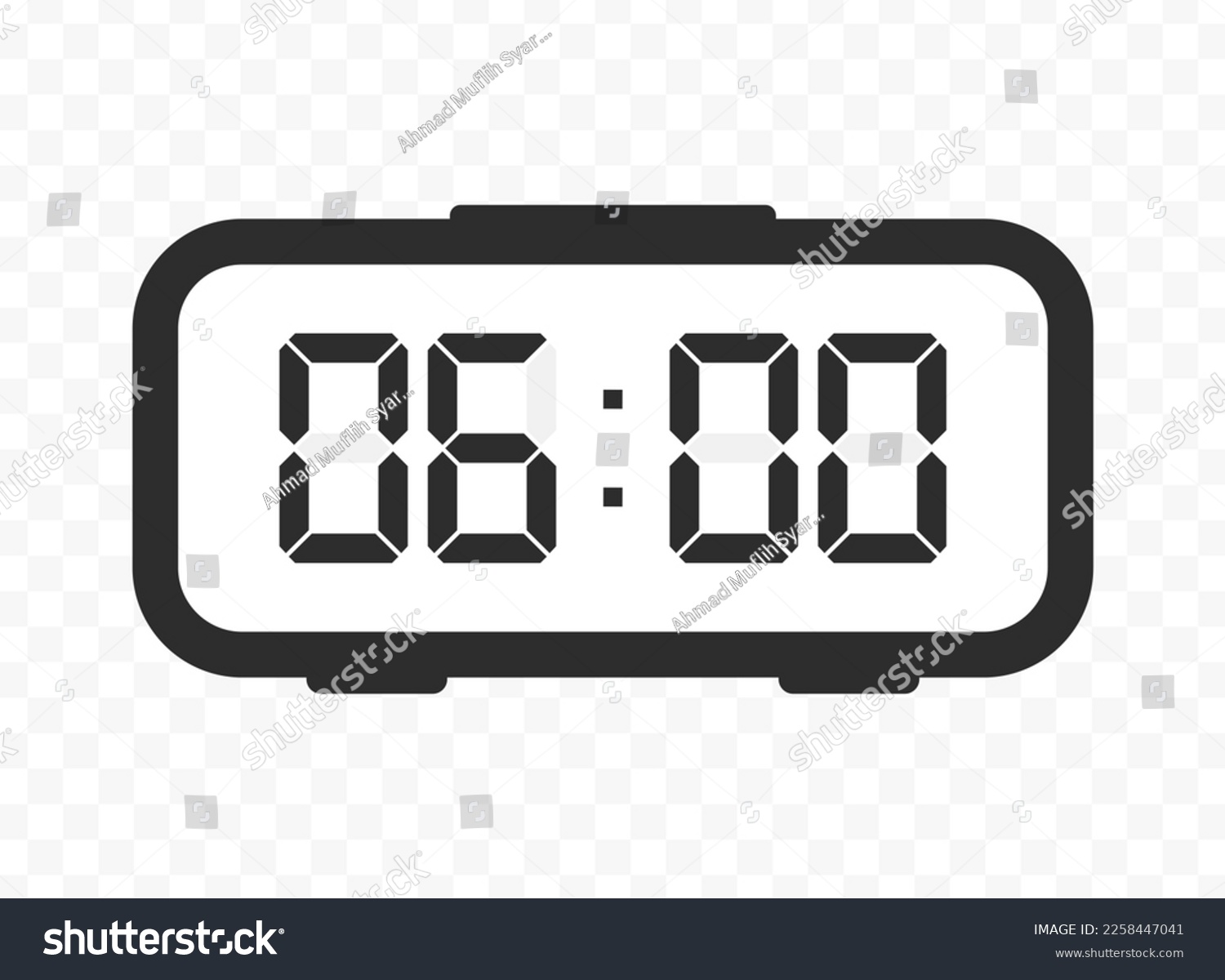 6時のデジタル時計のアイコンの記号とシンボルのベクターイラスト。ウェブサイトのデザイン用の色付きアイコン。透明な背景にシンプルなデザイン PNG 。」のベクター画像素材 ロイヤリティフリー2258447041Shutterstock。