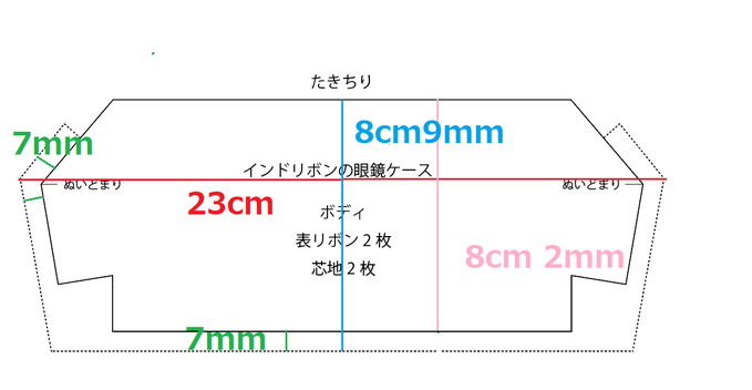☆ペンケースの型紙・金具の高さが1cm長い場合の、型紙の補正の仕方。』。