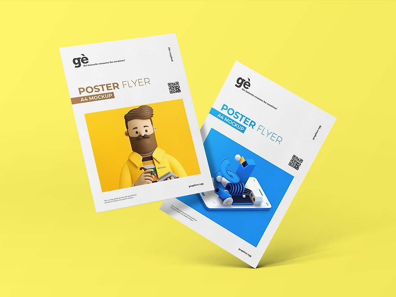 無料のA4ポスターモックアップ psdUIDownload。