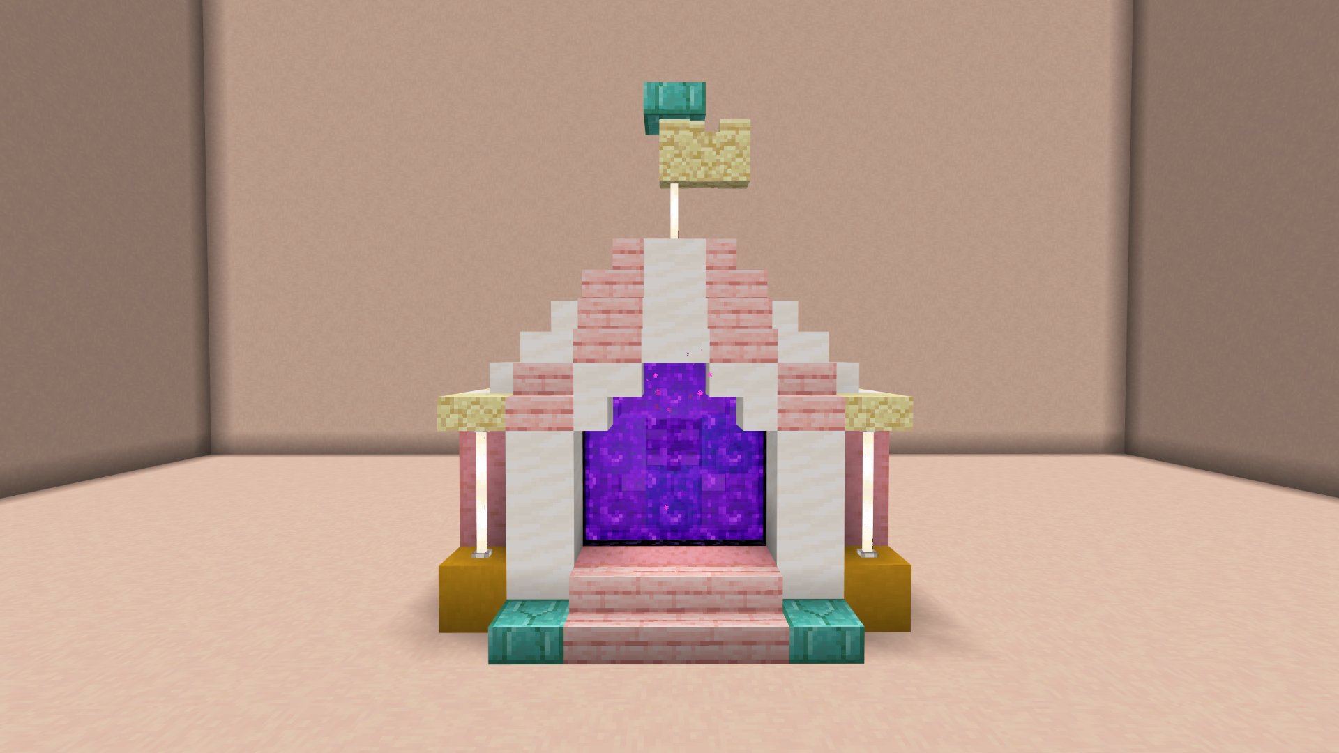 丸っこくて可愛い!桜色のネザーゲート装飾の簡単な作り方 マインクラフト。