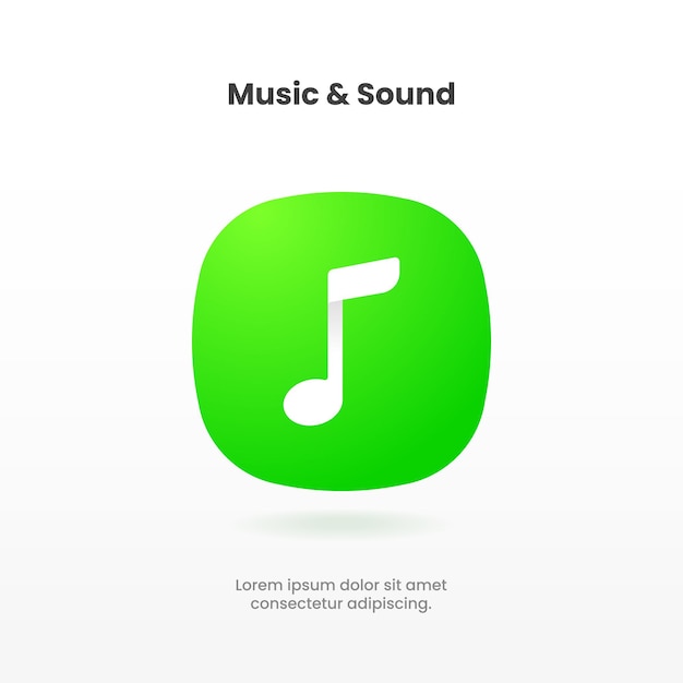 D 現代の音符、音、歌、ノイズのアイコン。モバイル アプリ、UI UX ウェブサイトの音楽記号。再生アイコンPremiumベクトル素材。