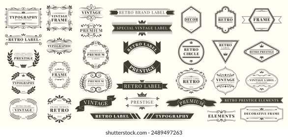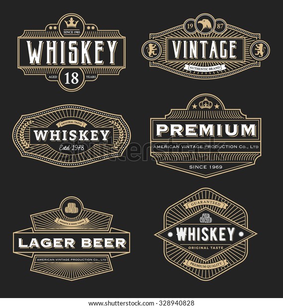 ラベル、バナー、ロゴ、エンブレム、メニュー、ステッカー、その他のデザインのビンテージフレームデザイン。ウイスキー、ビール、コーヒーショップ、ホテル、リゾート、宝石、プレミアム製品に適しています。すべてのタイプはフリーフォントを使用します。」のベクター。