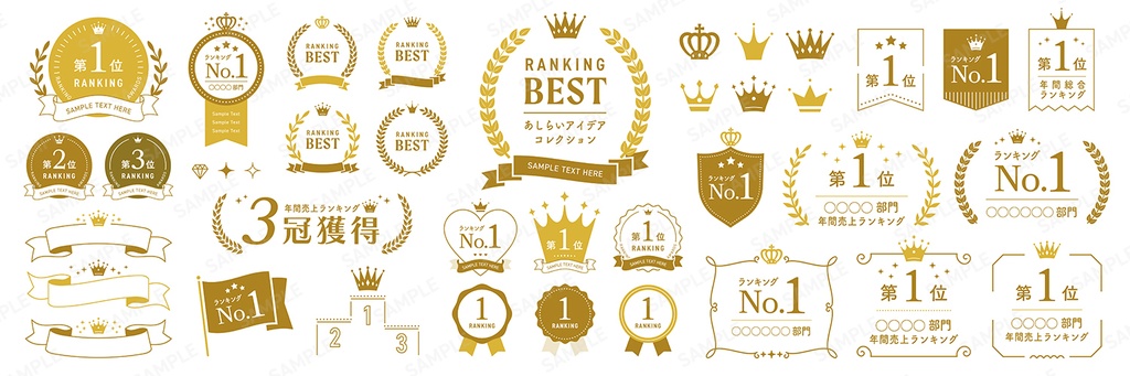 シンプルなランキングのあしらい、アイコン、フレームセット ゴールド- ricoricobooth - BOOTH。