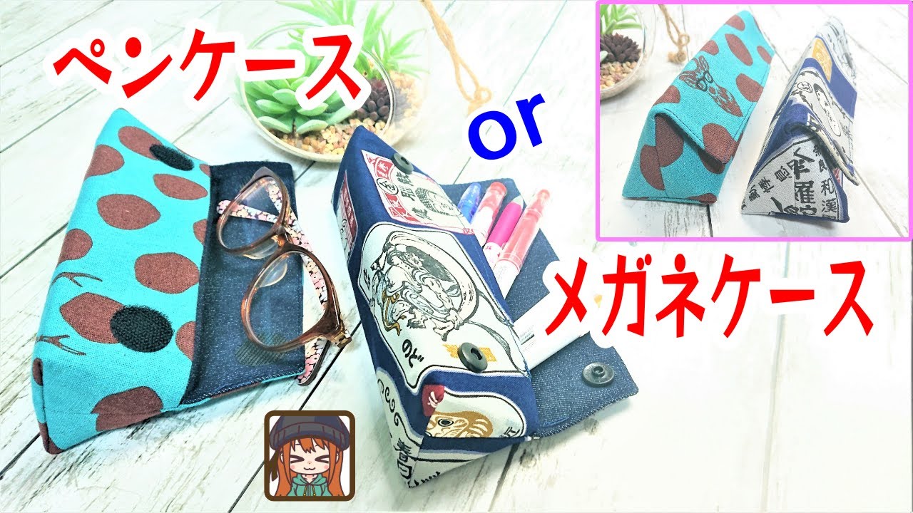 💖フリマにおすすめ💖ファスナーなしで簡単😆ペンケースにもメガネケースにもなる三角ポーチ✨手縫いでも簡単に作れます。