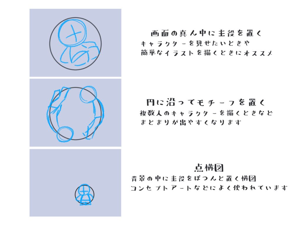 初心者も簡単!図形で考える構図の描き方 円形構図・三角形構図・対角線構図- オンラインイラスト教室アタムアカデミ。