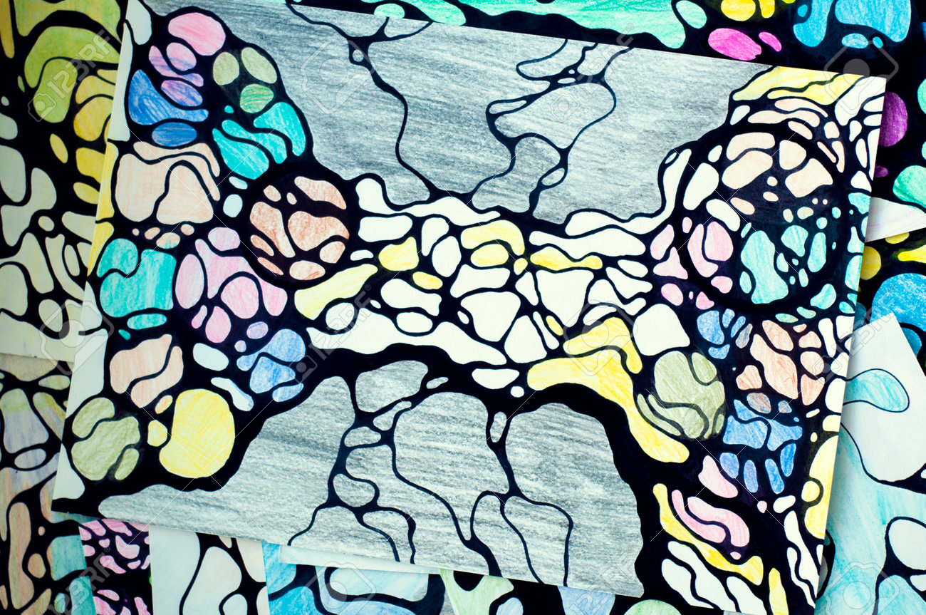 女性が色鉛筆で紙に神経図を描く。ニューログラフィックアートは、描画を通じて潜在意識を操作する方法です。心理学。の写真素材・画像素材 Image202368331。