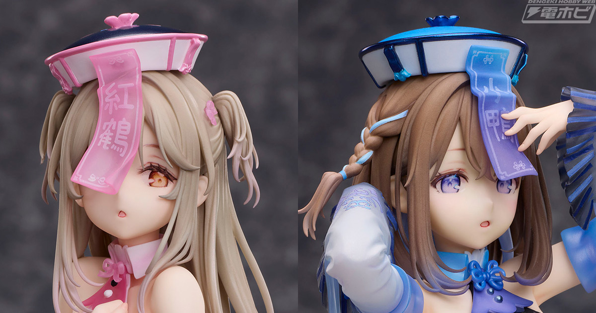 イラストレーター・Anmi氏が描く「ピンクのキョンシーちゃん」と「青のキョンシーちゃん」が1 7スケールフィギュア化!太極図をモチーフにした台座が付属!電撃ホビーウェブ。