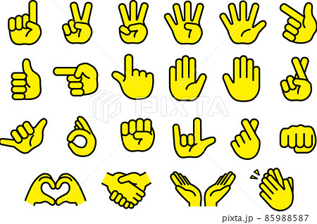 手ジェスチャー絵文字の色アイコン セット 手を振って ジャズ 親指を上下 うそをつくジェスチャー 指をクロスを開きます 分離ベクトル イラストストックベクター ©bsd_studio 247530816。