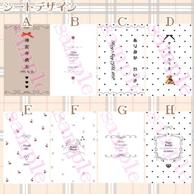 れいちゃんねる🍒🎤🎶 on X: "キンブレシートデザイン新しくしました 。• ·̫ •。 💓無地のデザインやオリジナルのデザイン も可能です🙆🏻21番デザインの文字の変更、22.23番デザインのキャラクターの変更も可能です🙆🏻お気軽にリプライ、DMお送りください 。•ᴗ•。 🌟キン。