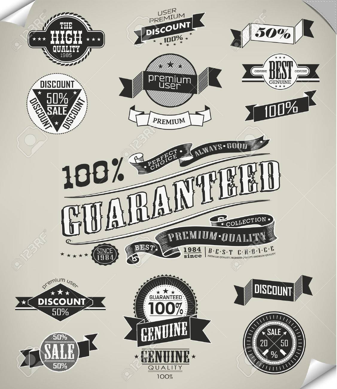 プレミアム品質、保証と販売ラベル、タイポグラフィ デザインのイラスト素材・ベクター Image 23702652。