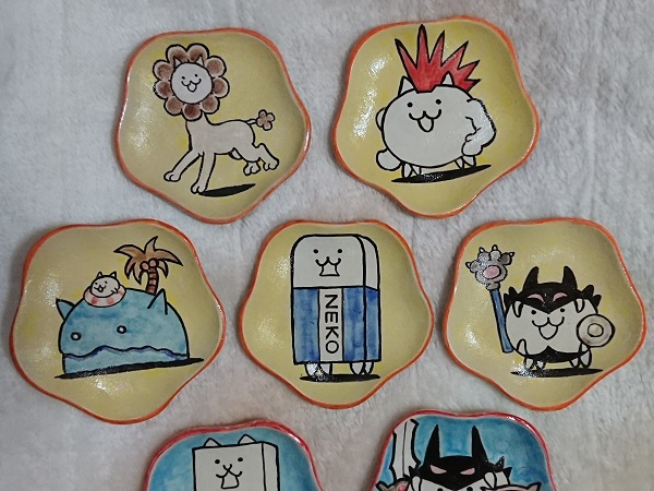 にゃんこ大戦争イラスト入り梅たたら皿&干支 ねずみ の箸置きが焼き上がってきました♪だぶるけいの活動日記♪。