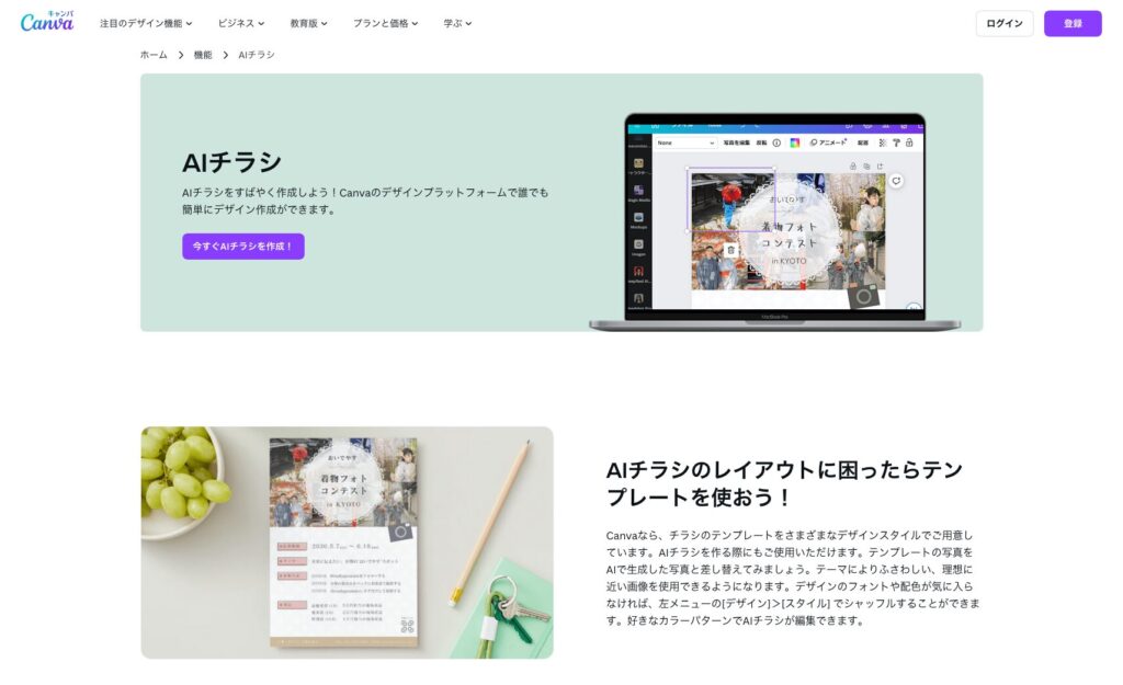 チラシ作成やフライヤー制作が無料!AI搭載のデザイン作成アプリでおしゃれに簡単ビラ製作・印刷Canva キャンバ。