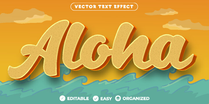 編集可能なハワイ フォント タイポグラフィ テンプレート テキスト効果スタイル レタリング ベクトル図Premiumベクトル素材。