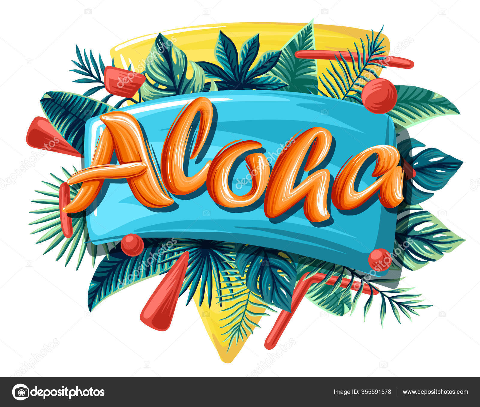 アロハハワイトロピカルは明るいバナーオレンジの文字を残します ストックベクター ©elenbushe.gmail.com 355591578。