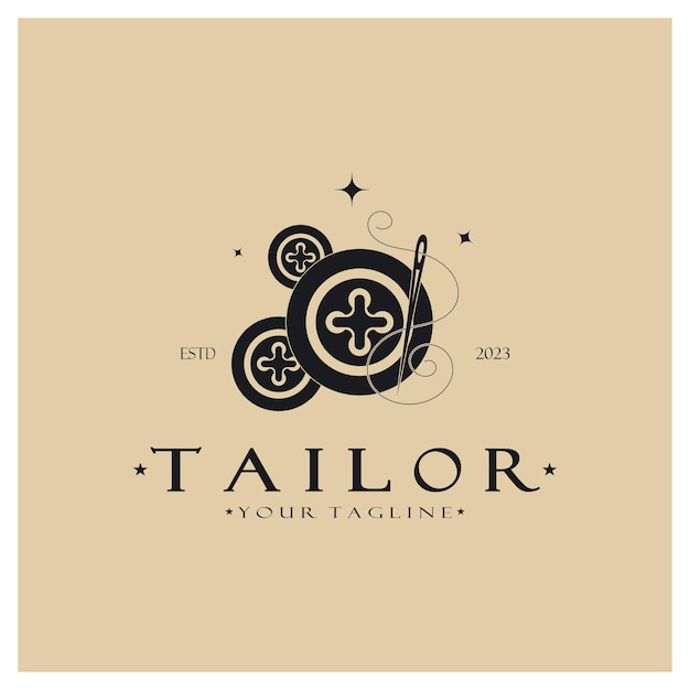 服の糸のボタンと衣料品の製品デザイン対流企業ファッション ベクトル形式のミシンのロゴ アイコン イラスト テンプレートの組み合わせを調整します。Premiumベクトル素材。