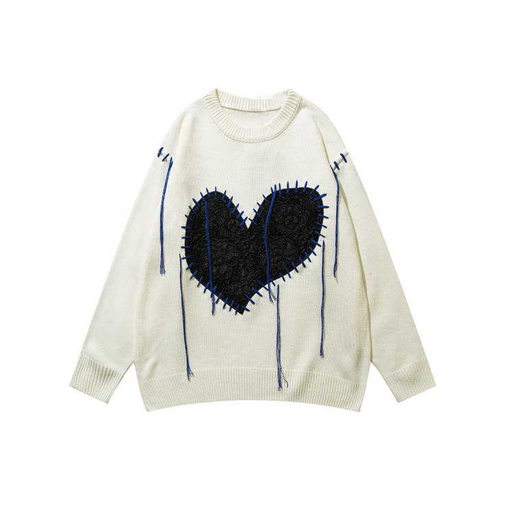 ハートパッチワーク 垂れ糸デザインニット 韓国ファッション。