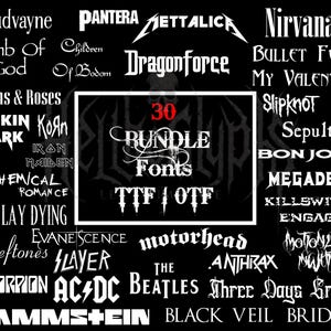 有名なバンドロゴに使われているフォントをフリーフォントで「Fonts Used In Popular Band Logos」。