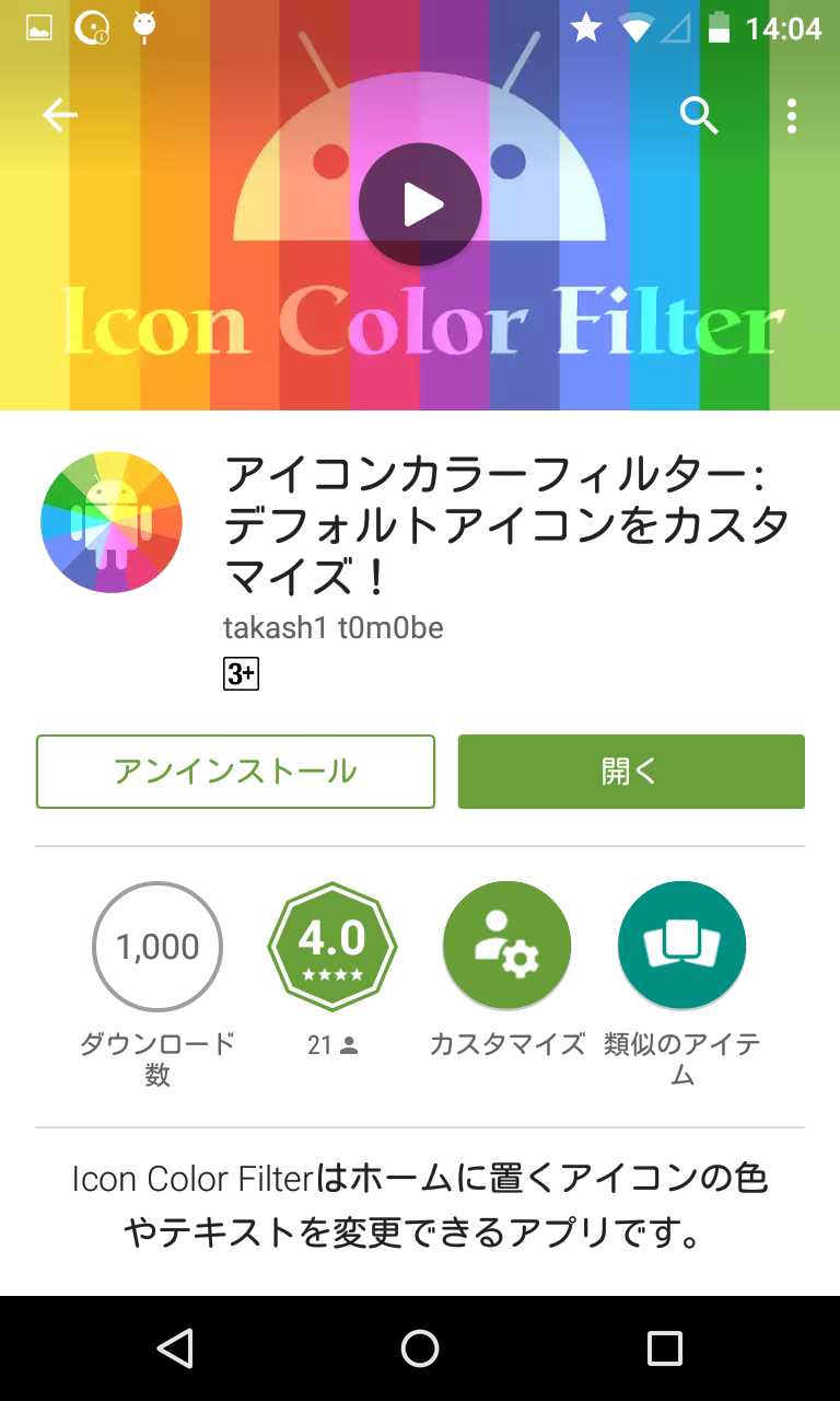□アイコンカラーフィルター:デフォルトアイコンをカスタマイズ! ~ テーマを使わずにアプリアイコンデザインを統一! : Android☆SQUARE。