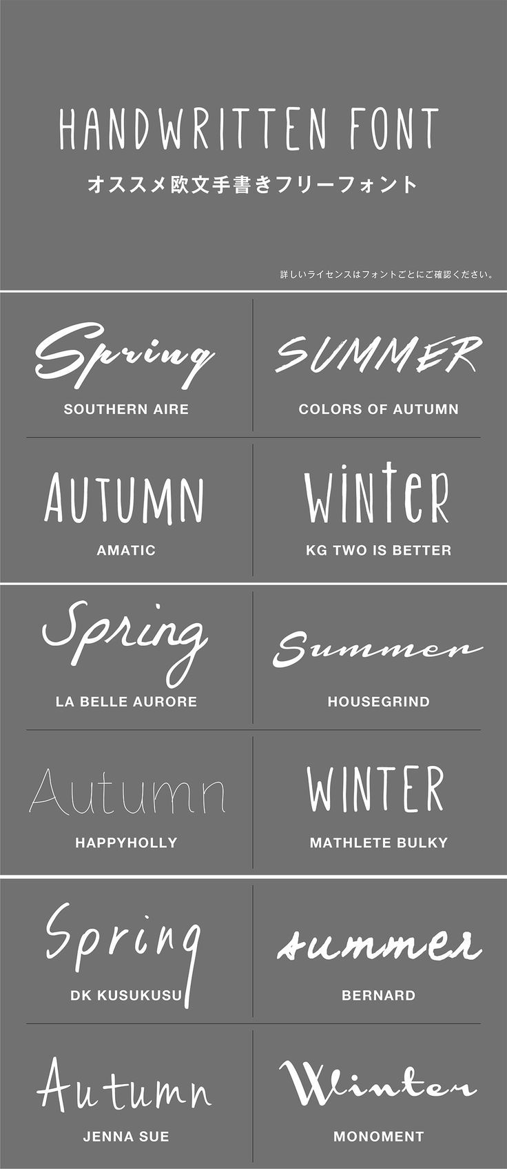 閲覧専用 フォントリスト 筆記体 ブロック体 日本語 全70種。