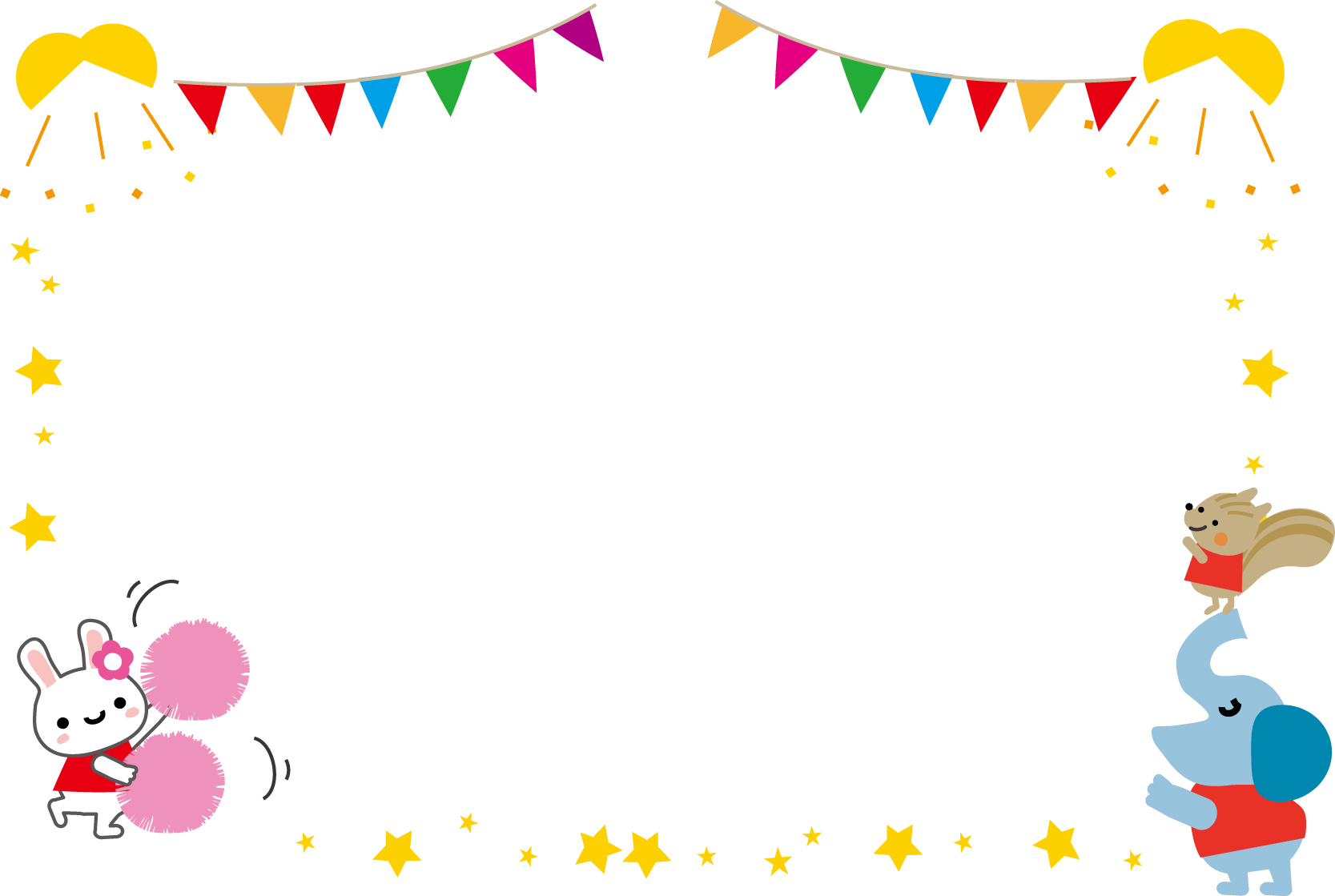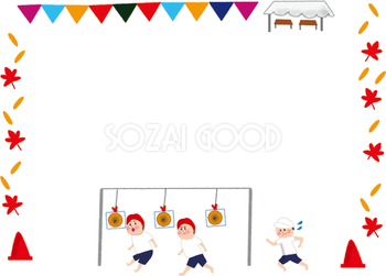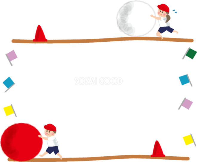 運動会 フレームイラストなら、小学校・幼稚園向け・保育園向けのかわいい無料イラストお試しフリー素材 カット がいっぱいの安心サイトへどうぞ。