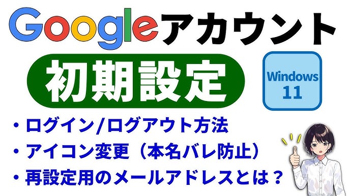 初心者向け Googleアカウント の 初期設定 ▶ 新規作成 アイコン 変更 ログイン ログアウト 解説 パソコン $0060。