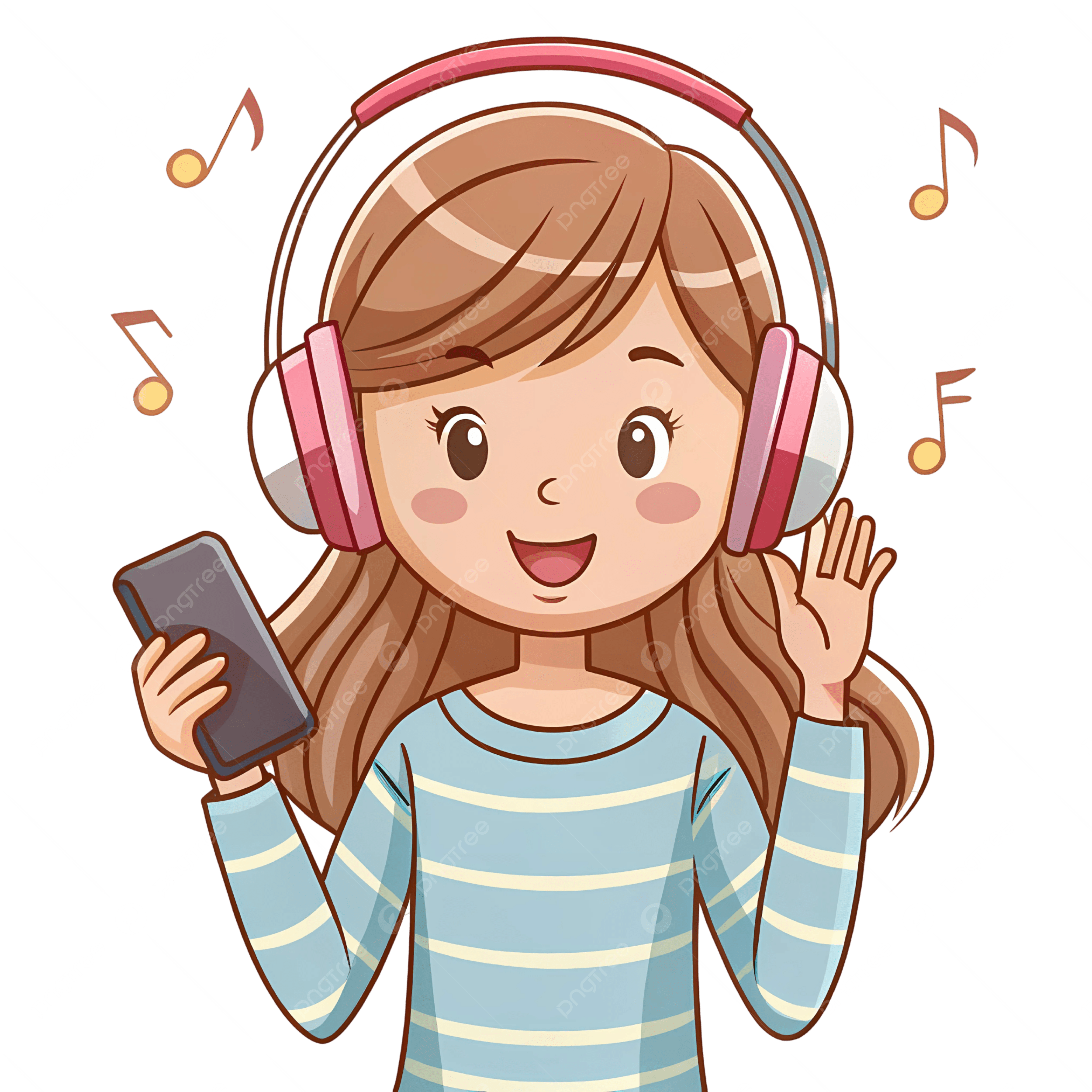 スマートフォンのイラストを備えたヘッドフォンで音楽を聞いている幸せな女の子イラスト素材透過、PNGフリー画像ダウンロード - Pngtree。