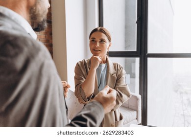 椅子に座って話を聞いている若い女性。 のイラスト素材FYI04941664ストックフォトの Qlean Market キュリンマーケット。