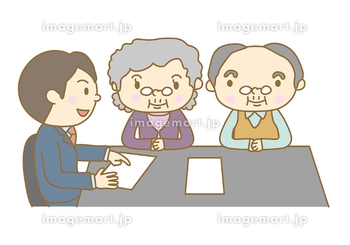ビジネスマンの説明を聞いているシニア夫婦のイラスト素材250048076- イメージマート。