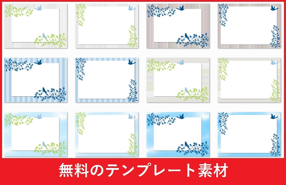 かわいい!葉っぱと青い鳥の無料イラストフレーム・飾り枠の素材📑無料ダウンロード!テンプレルン📑無料ダウンロード!テンプレルン。