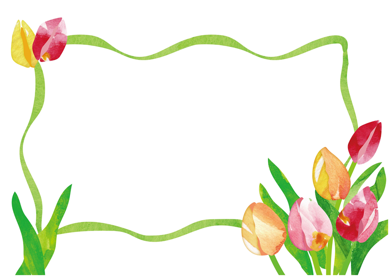 フレーム・枠テンプレート04「チューリップの花のイラスト」 PDF・PNG・JPG 無料ダウンロードテンプレートNAVI。