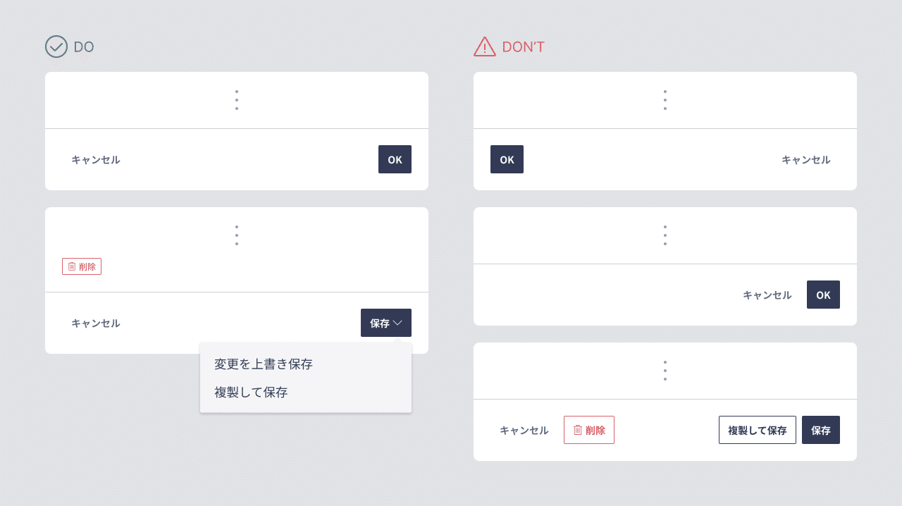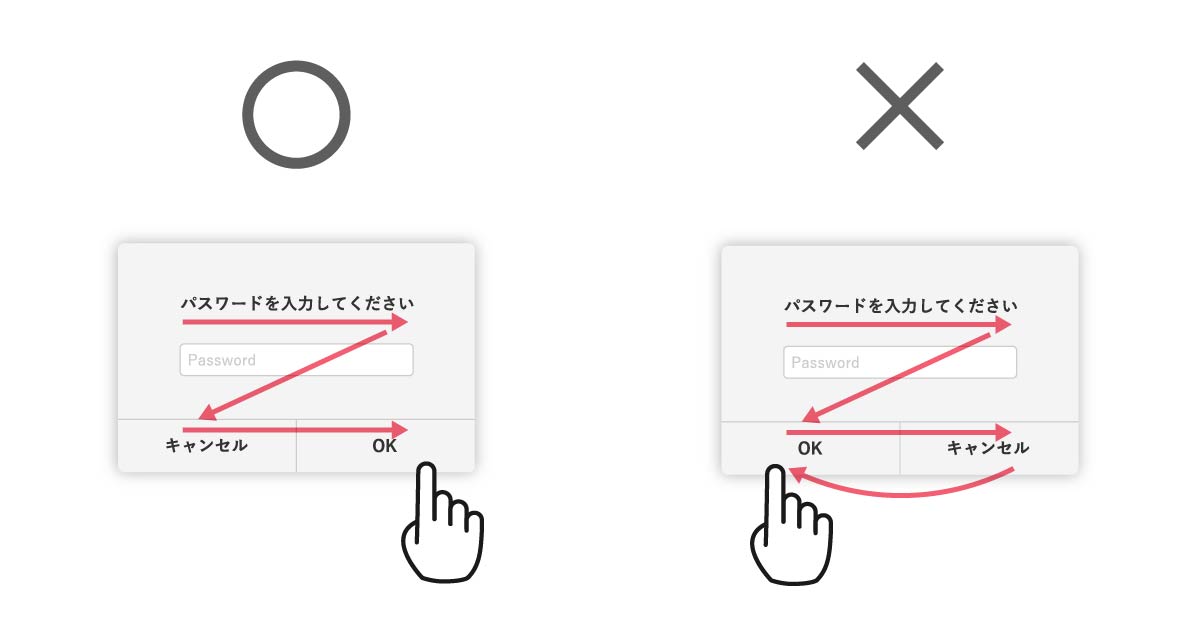 OK キャンセルボタンUIデザインポリシー整理MNTSQ株式会社。