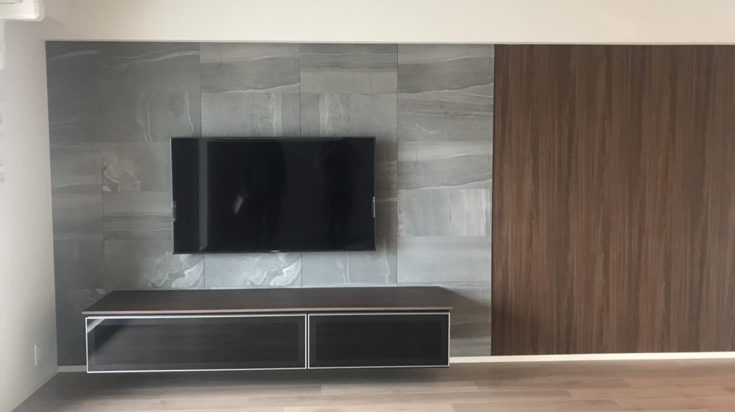 岐阜県可児市でエコカラット壁 ラフクォーツ に65インチXLEDテレビ 4T-C65DP1 を壁掛け CATO施工事例1462。