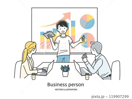 プレゼンをする起業家の男性のイラスト素材119907299- PIXTA。