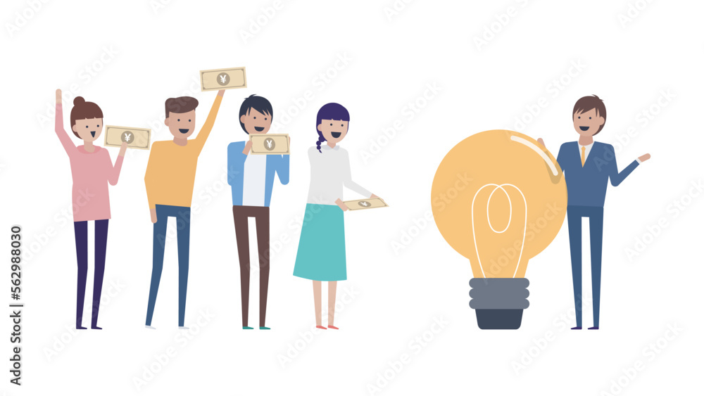 クラウドファンディングでお金を集める起業家の男のイラスト素材mayucolor03 Stock VectorAdobe Stock。