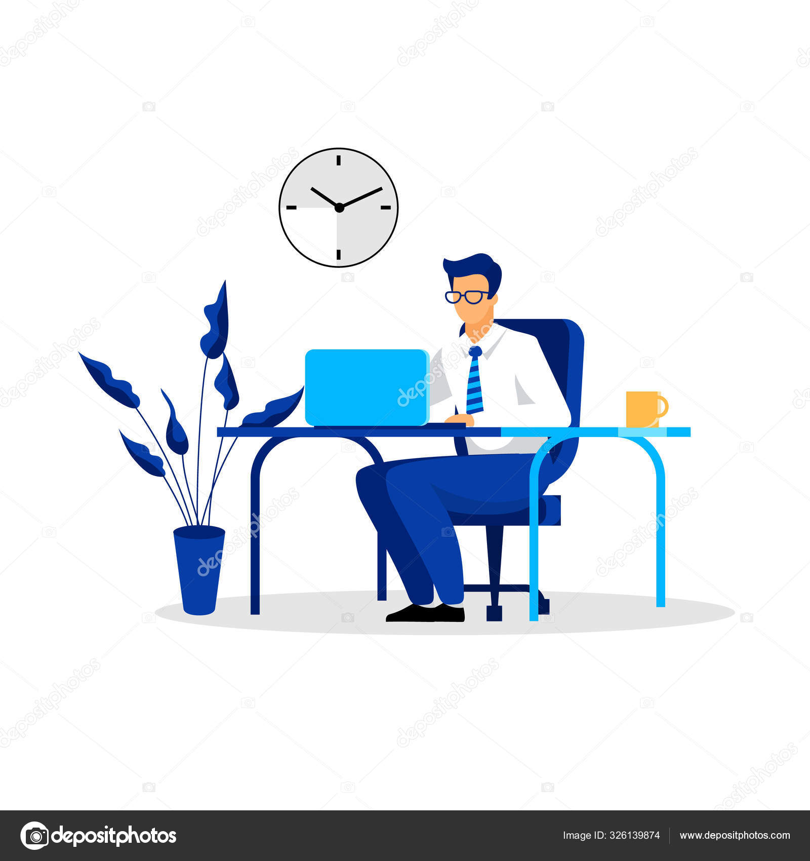 ビジネスマン、起業家、最高経営責任者 CEO、銀行家、金融、オフィスフラットベクトルイラストで働くコンサルタント ストックベクター ©TheImg326139874。