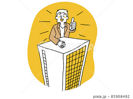 起業に成功した男性 ビルに寄りかかりサムズアップをするコンセプトアート 温かみのある手描きの人物のイラスト素材85908492- PIXTA。