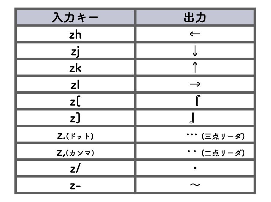 ローマ字入力で矢印「←↑→↓」を簡単に入力する方法。