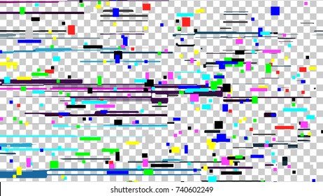透明な背景にグリッチ歪み。ビデオの問題テンプレート。白と黒の形。VHSランダムノイズ。抽象的なピクセルの詳細。ベクターイラストのイラスト素材・ベクターImage 186242376。