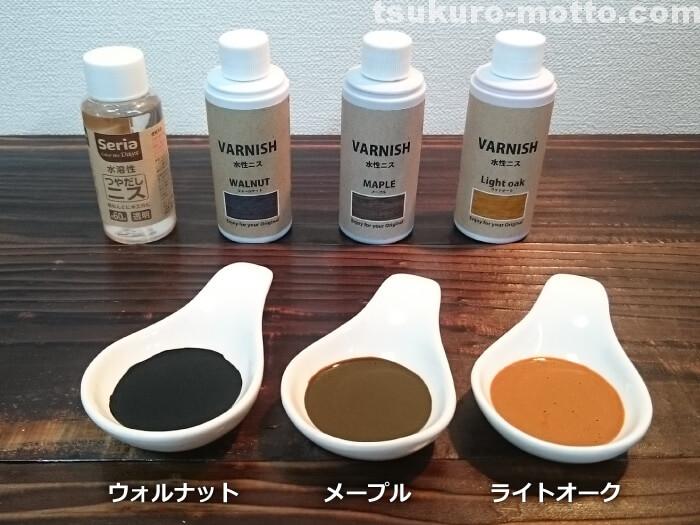 セリアの「水性ニス」全3色を買ったよ。色見本と比較、おすすめレビュー 100均rooms19。