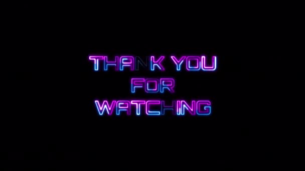 Animated Thanks for watching blue neon sign glowing with halftone on blackbackground。