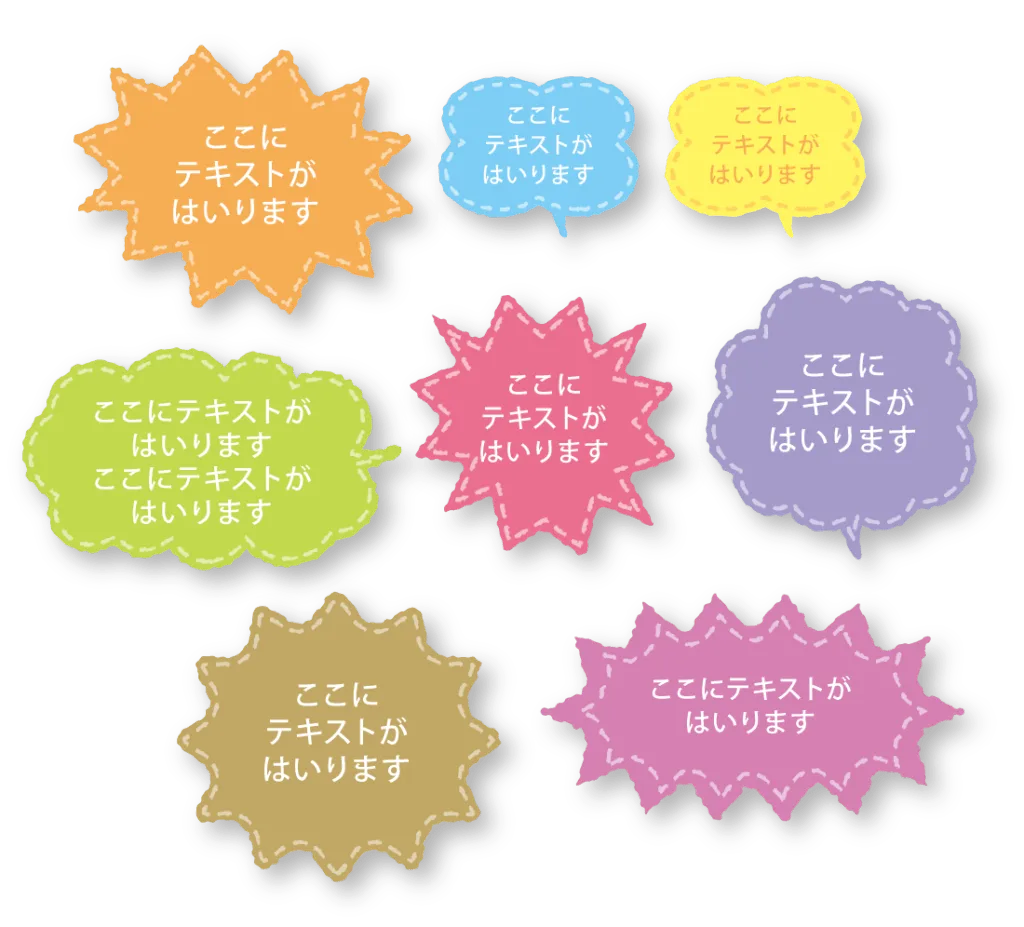 ぎざぎざの吹き出しカラフル無料イラスト素材素材ラボ。