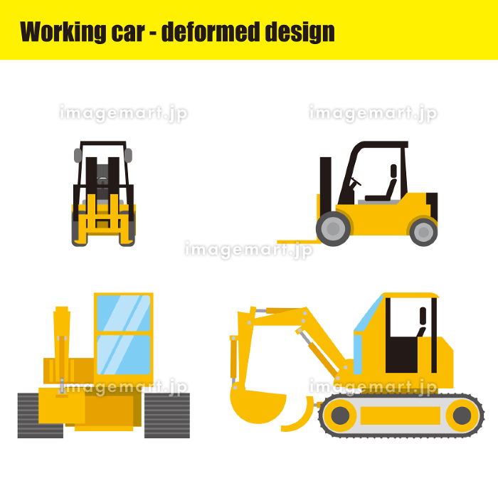 デフォルメ かわいい働く車のイラストセット パワーショベル フォークリフト 正面横170683831- イメージマート。