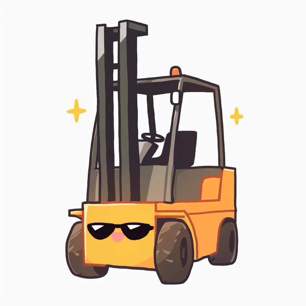 フォークリフトの手書き風イラストアイコン可愛い絵文字アイコンイラスト『落書きアイコン』。