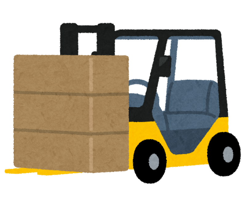 荷物とフォークリフトのイラスト無料のフリー素材 イラストエイト。
