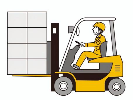 フォークリフトで荷物の移動をする人:イラスト無料。