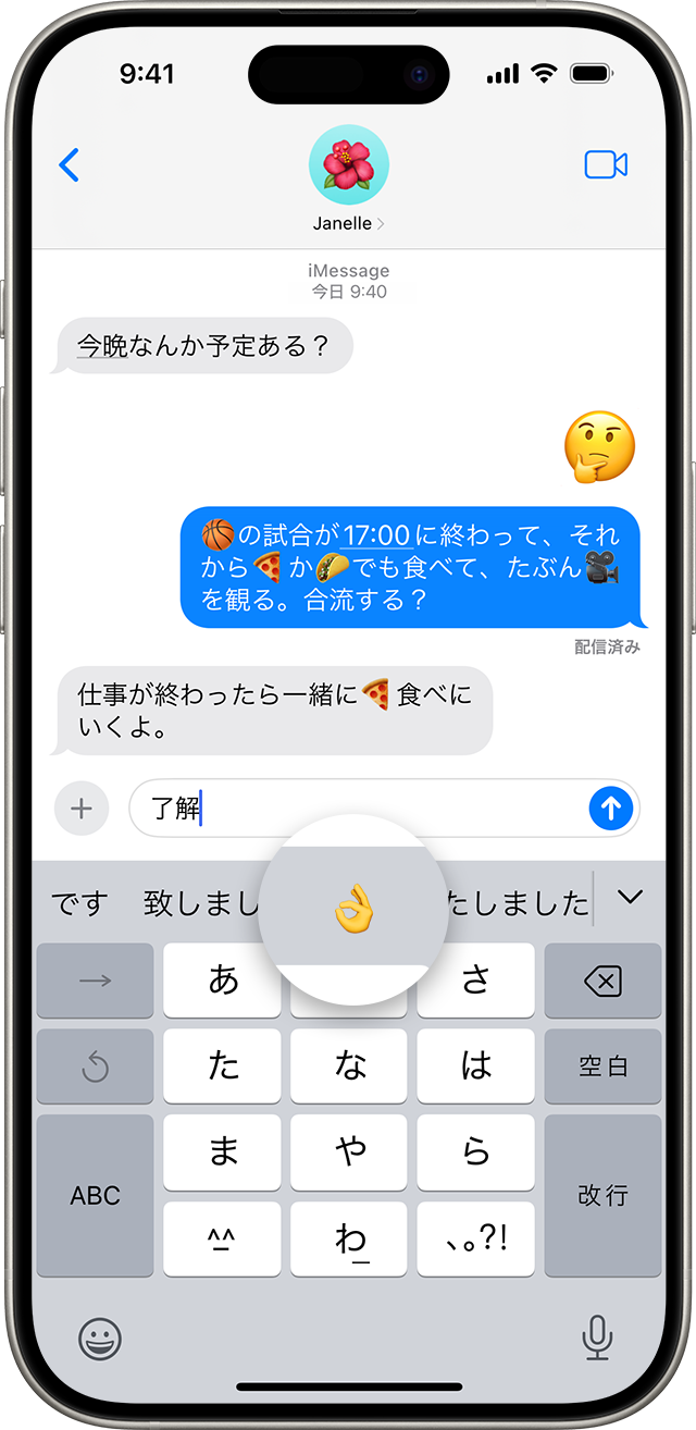 iPhoneのキーボードで絵文字、ミー文字、ステッカーを追加する - Apple サポート日本。