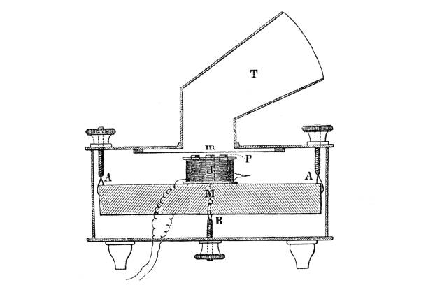 科学的発見実験発明のアンティークイラスト電話マイク送信機 - 19世紀のベクターアート素材や画像を多数ご用意 - 19世紀, 19世紀風, つながり- iStock。
