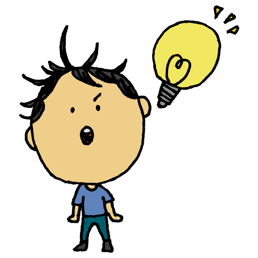 ひらめいて電球が出た男性のフリーイラストフリーイラスト・クラシック フリクラ。