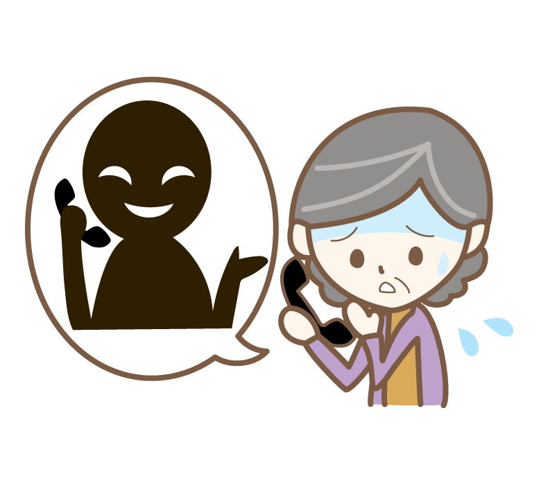 電話を不審がるおばあさんのイラスト無料のフリー素材 イラストエイト。