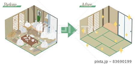 遺品・生前整理のビフォーアフターのイラスト素材83690199- PIXTA。